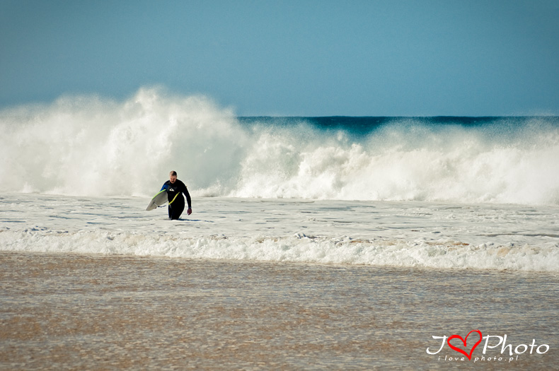 Dzisiaj prezentuję pierwszą część zdjęć z wyjazdu, w całości poświęconą surfingowi. Wszystkie fotografie zostały wykonane w miejscowości El Cotillo, słynnym surferskim spocie w pierwszy dzień pobytu, kiedy warunki do surfowania dopisały aż za bardzo, a fale były imponujące. Dla mnie tak duże fale to ogromne wyzwanie, tym bardziej że jedna z nich strasznie mnie skotłowała i w efekcie uderzyłem barkiem o dno. Przez następny dzień ledwo ruszałem ręką i do dzisiaj czuję ból w barku i plecach. Na szczęście kontuzja wykluczyła mnie tylko na jeden dzień i przez resztę wyjazdu surfowałem na mniejszych falach, walcząc z bólem prawej części ciała.